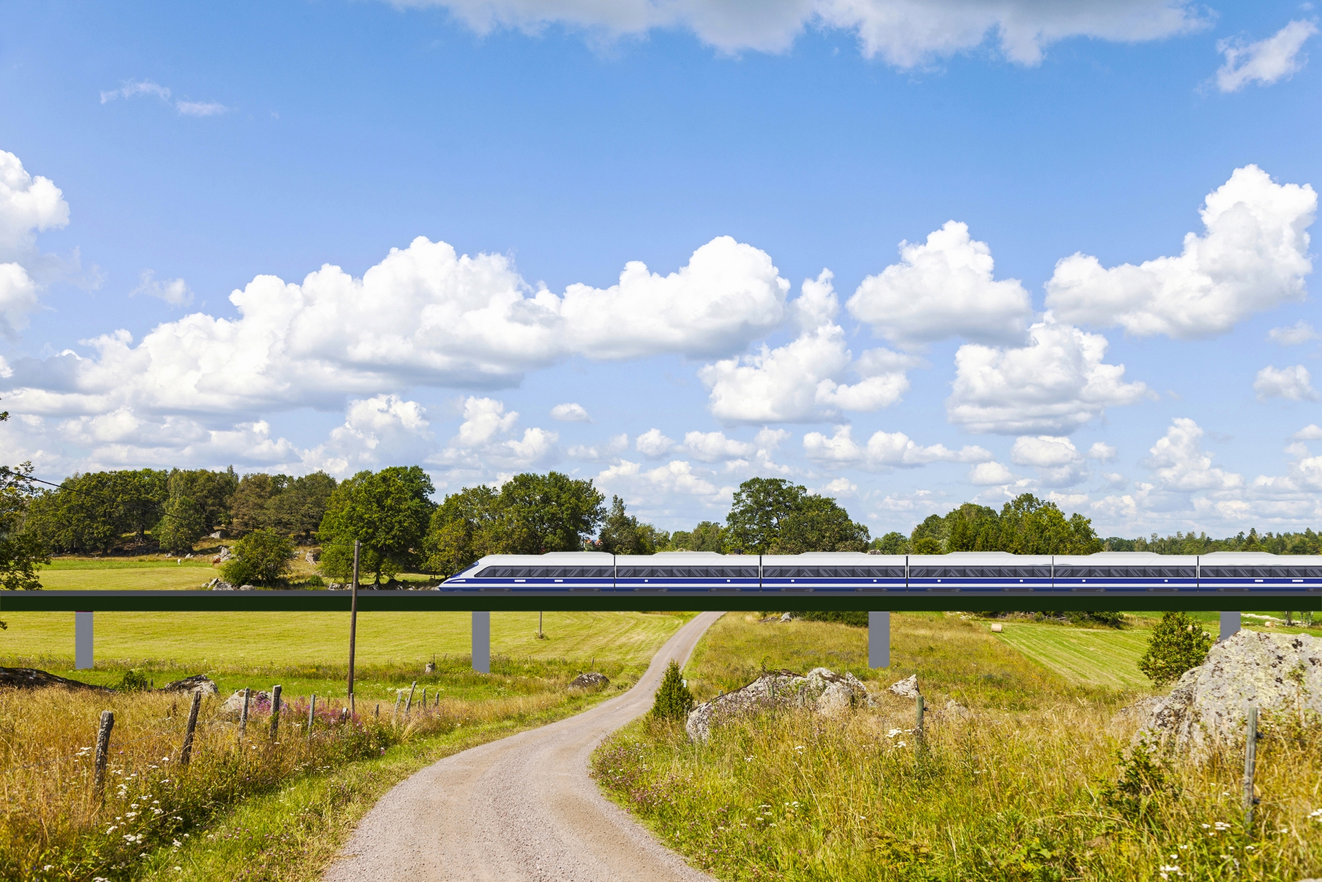 In the countryside, each track is built on its own pillar An almost unaffected landscape for the landowner after the bridge track is completed